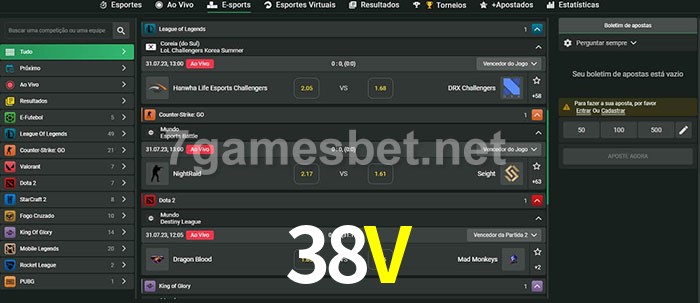 O 38V oferece uma grande seleção de opções de apostas em e-sports com probabilidades competitivas
